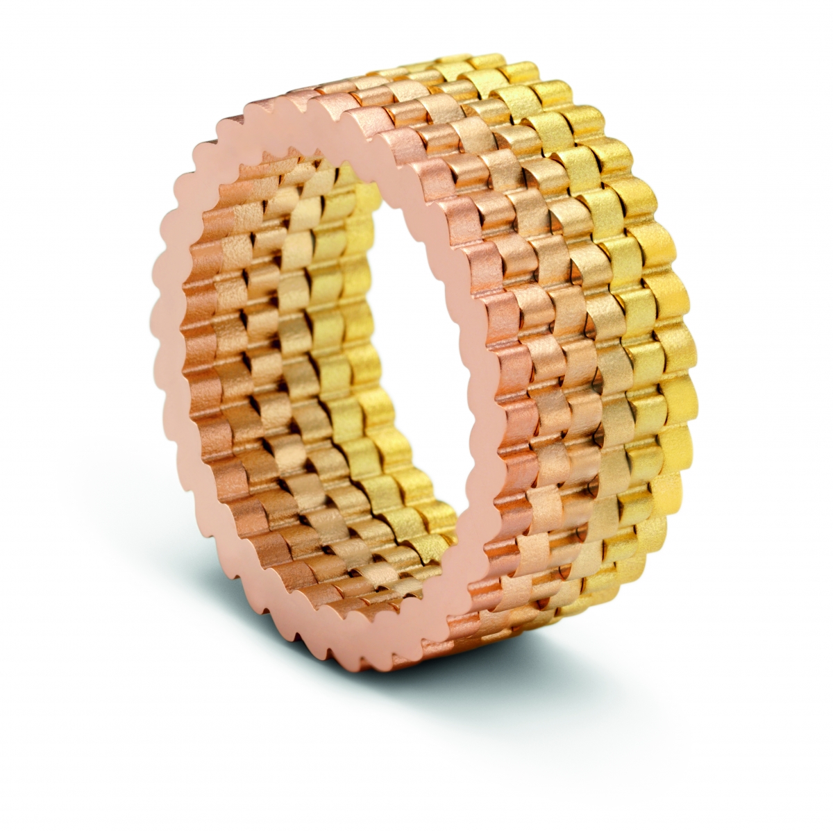 充滿活力的Architecture Step 令我們聯想到香港的現代建築,以圓型偏移的對角排列,創造出奇妙的波紋輪廓。數枚指環能如拼圖般,互相緊扣拼湊出獨有風格。
