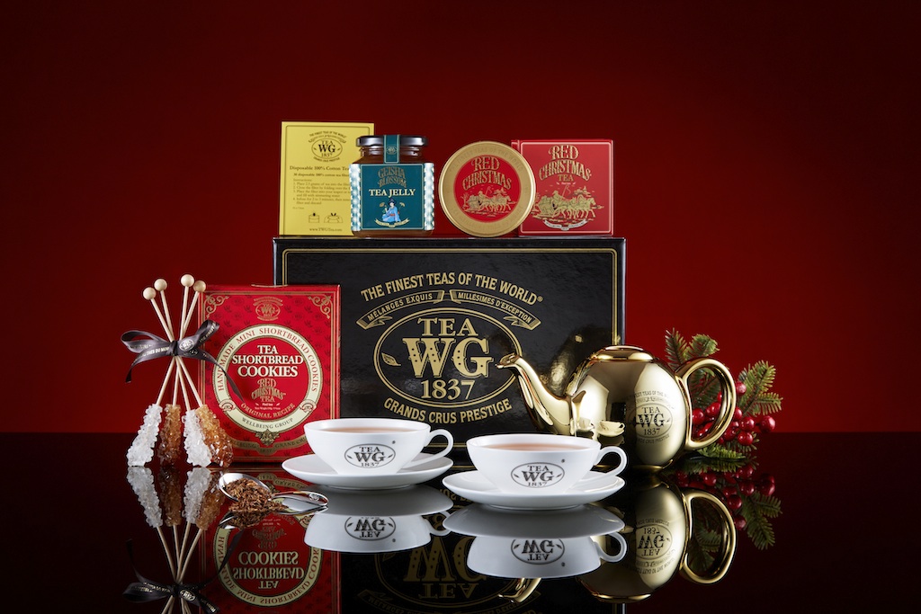 Tea WG特色禮籃:可隨喜好從800多種散裝茶葉中挑選喜歡的茶葉,另外並配有優雅茶具、特色罐裝茶葉、茶味果凍、朱古力、茶糖、馬卡龍與茶韻奶酥餅等任君選擇。另外還有散發茶香的薰香蠟燭,為聖誕節充滿了芬芳的香氣。Tea WG的茶罐每款都以獨特圖案及用色包裝,高貴又獨特。