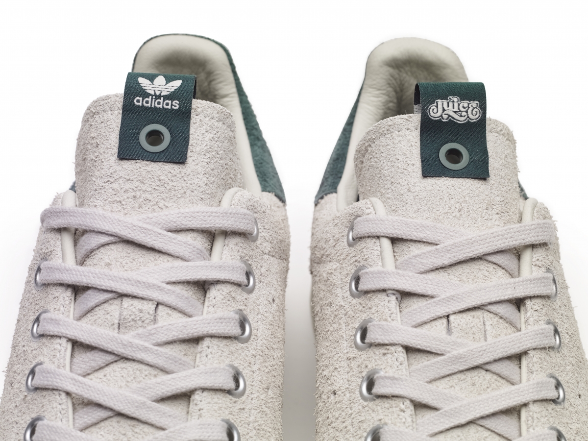 今次的JUICE x adidas Consortium Stan Smith 的創作靈感是 “STAY OFF THE GRASS” , “STAY OFF THE GRASS” 的意思是不要踐踏草地。JUICE Stan Smith將乾淨的淺灰色貫穿鞋身,於細節位置用上代表草的綠色, 並於兩隻鞋的鞋舌位置車上分別繡上JUICE及adidas的LOGO。(零售價:$1,180)