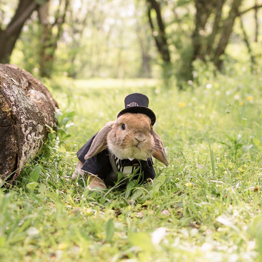 這隻是PuiPuiBunny,每輯相片主人都會把他打扮成小紳士,真的好萌啊!