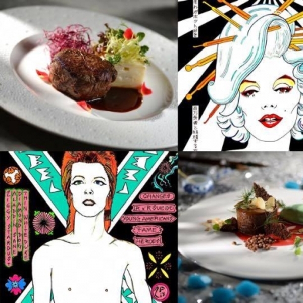 頭盤「劍魚沙律配醃洋蔥及紅菜頭魚子醬」,靈感沿自於作品「Some Like it Hot」,畫中以日本漫畫形式繪畫瑪麗蓮夢露,飄逸的頭髮上插滿髮夾,呈現出不一樣的她,藉此向瑪麗蓮夢露致敬。而顏色突出的紅菜頭魚子醬,亦使人聯想起瑪麗蓮夢露的美麗紅唇。