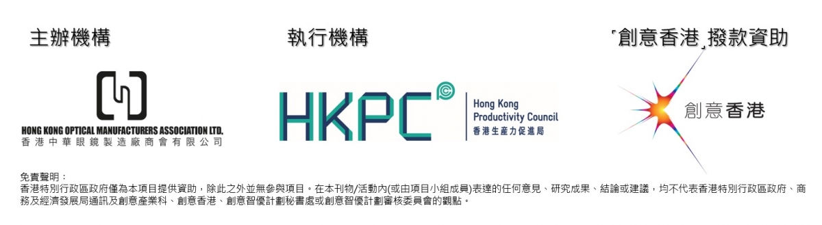 以上項目由香港中華眼鏡製造廠商會主辦、香港生產力促進局執行以及得到香港特別行政區政府商務及經濟發展局轄下的創意香港「創意智優計劃」資助。