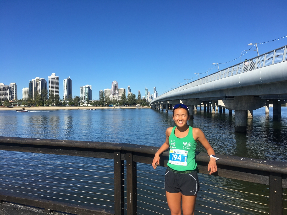 A:跟家豪訓練後,由10公里開始跑,兩年後就開始半馬,2017年渣馬才第一次跑全馬,跑3小時08分,當時家豪叫我嘗試,知道潔貞有計劃生BB,又有其他女選手專注三鐵,他覺得可能是一個機會入港隊。2017年7月去了澳洲黃金海岸跑,他希望我可以做到sub 3,最後做出成績2小時54分,晉身了田總排名第二,之後就去東莞亞錦賽。