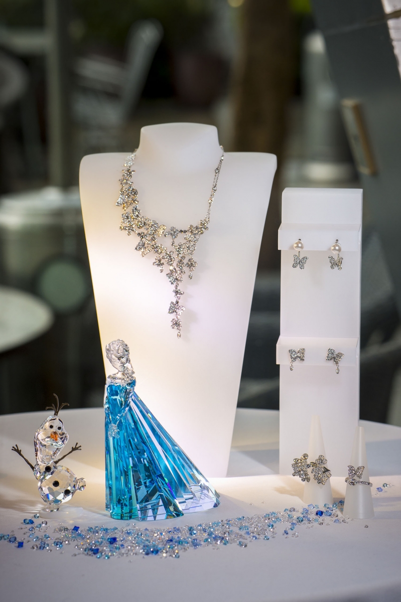 Swarovski以璀璨奪目的水晶,演繹《魔雪奇緣》中的精彩角色,以豐富閃亮的切面捕捉光線,為家居注入耀眼光彩。電影中的重要角色愛莎,以閃亮醉人的藍色及透明水晶精心打造,其329個瑰麗切面巧妙反射光線,猶如施展出賞心悅目的冰雪魔法。而可愛趣致的雪寶,則揉合了閃爍耀眼的透明水晶以及鮮艷奪目的橙色鼻子。他單腳站立的精靈姿態,臉上更帶著燦爛的笑容,為這款閃現380個切面的塑像增添巧妙點綴,絕對是迪士尼粉絲的蒐集首選。