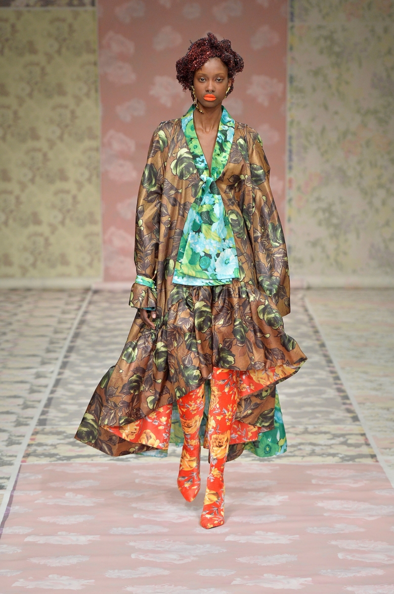 這位咁巴閉得到女王親臨撐場的 Richard Quinn是LFW新人,16年於CSM中央聖馬丁藝術學院畢業,曾操刀 Lady Gaga 巡迴演唱會服裝,曾獲 H&M 設計獎,又與倫敦Liberty百貨公司合作新系列,以漂亮的印花設計見稱。他畢業後即在Peckham開了一間衣料印花廠,致力幫助學生和新設計師製作印花作品,有實力,有承擔,難得!