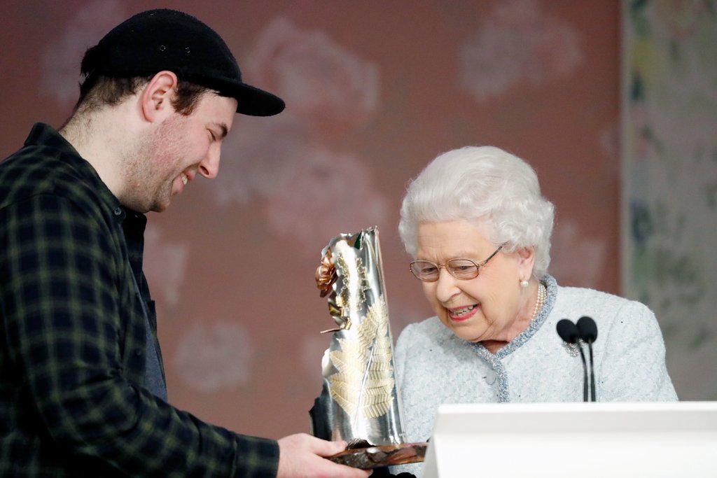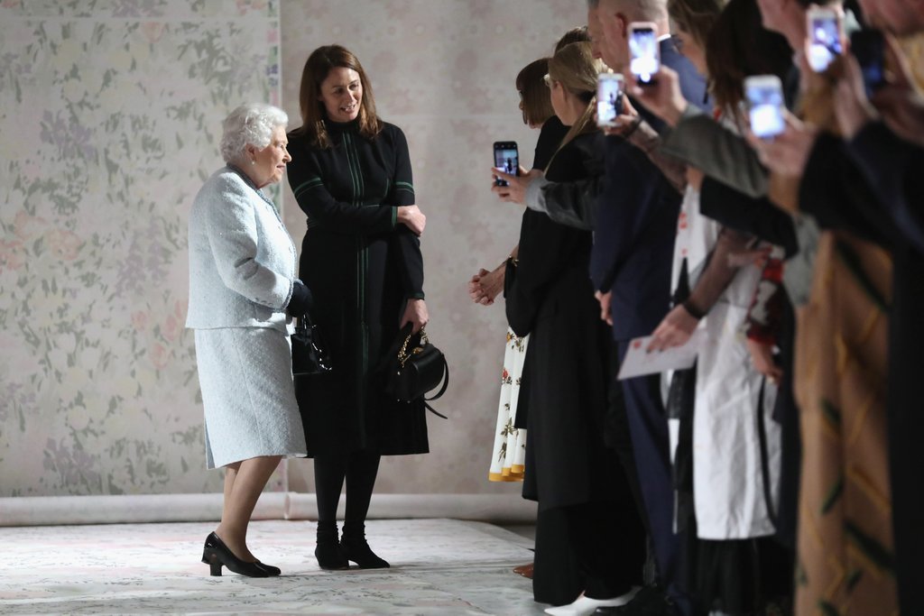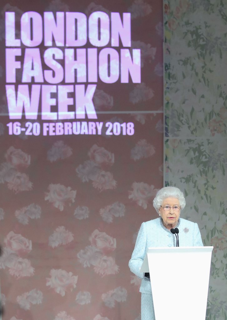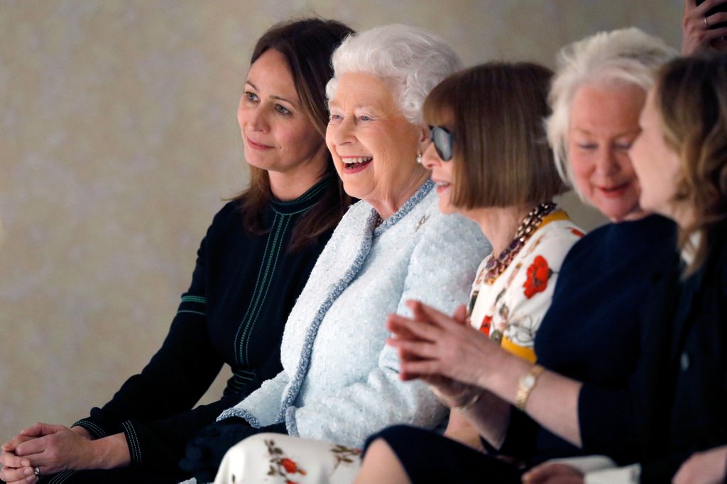 身著粉藍色套裙的英女王在其個人造型顧問Angela Kelly的陪同下,與《Devil wears Prada》的原型——美國《Vogue》主編 Anna Wintour 一齊坐 front row 睇 Richard Quinn 2018秋冬騷。騷後,英女王代表 British Fashion Council 頒發首屆英女王伊利莎白獎項予Quinn,以表彰這位英國新晉設計師。該獎項由BFC及皇室合作設立,此後將每年由一位英皇室成員頒獎予得獎設計師。英皇室人員往常除了多支持「自己人」的設計外,近日更積極推廣時尚活動,不久前,英女皇便聯同凱特王妃於白金漢宮辦活動,邀請時裝設計師及工匠前往一同慶祝英聯邦日,增進皇室與時裝業界的關係。