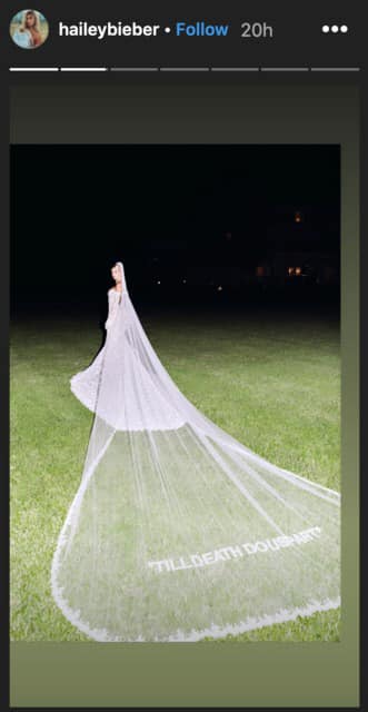 學Hailey Bieber披上繡有自訂字句的頭紗,做個至潮新娘子!