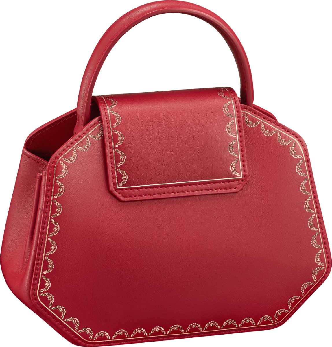 整個系列會推出3個不同size和4個顏色的手袋,當中包括迷你、小型及中size;顏色方面有紅色、綠色、黑色及Camel色,手袋亦配有可調校及可移除式的皮革肩背帶。袋身會以金色花邊來作點綴,其靈感來自Cartier珠寶盒於十八世紀已採用的「花環」或「蝴蝶」圖案,而該系列之名亦從此而來。Guirlande de Cartier系列以簡潔鮮明的輪廓體現極致柔美的氣質,相信是女士們在2019年必買的其中一個手袋!