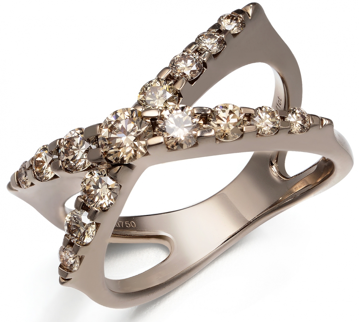 4)將三顆不同尺寸、分深、中、淺色的啡鑽鑲嵌一起