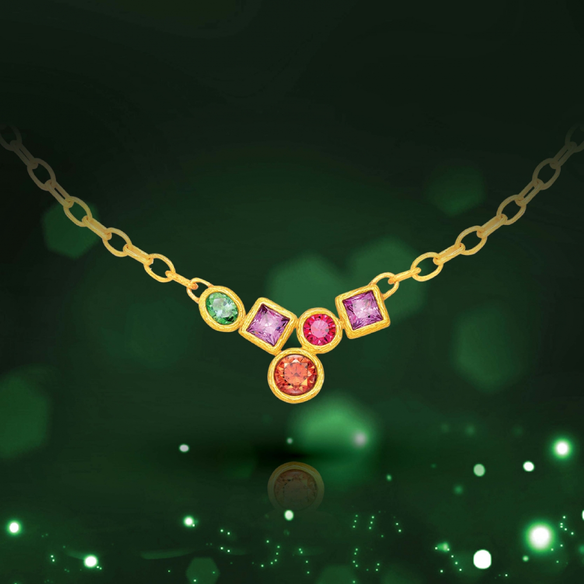 Firefly Collection分別以純金鑲嵌翠綠橢圓形、紫色正方形、艷紅及咖啡色圓形鋯石,恍如螢火蟲發放的點點光火,柔和卻懾人。系列備有項鏈、手繩、戒指、吊墜、單邊耳釘和單邊耳環,配以大自然為主題的純金樹木紋理,更添質感。