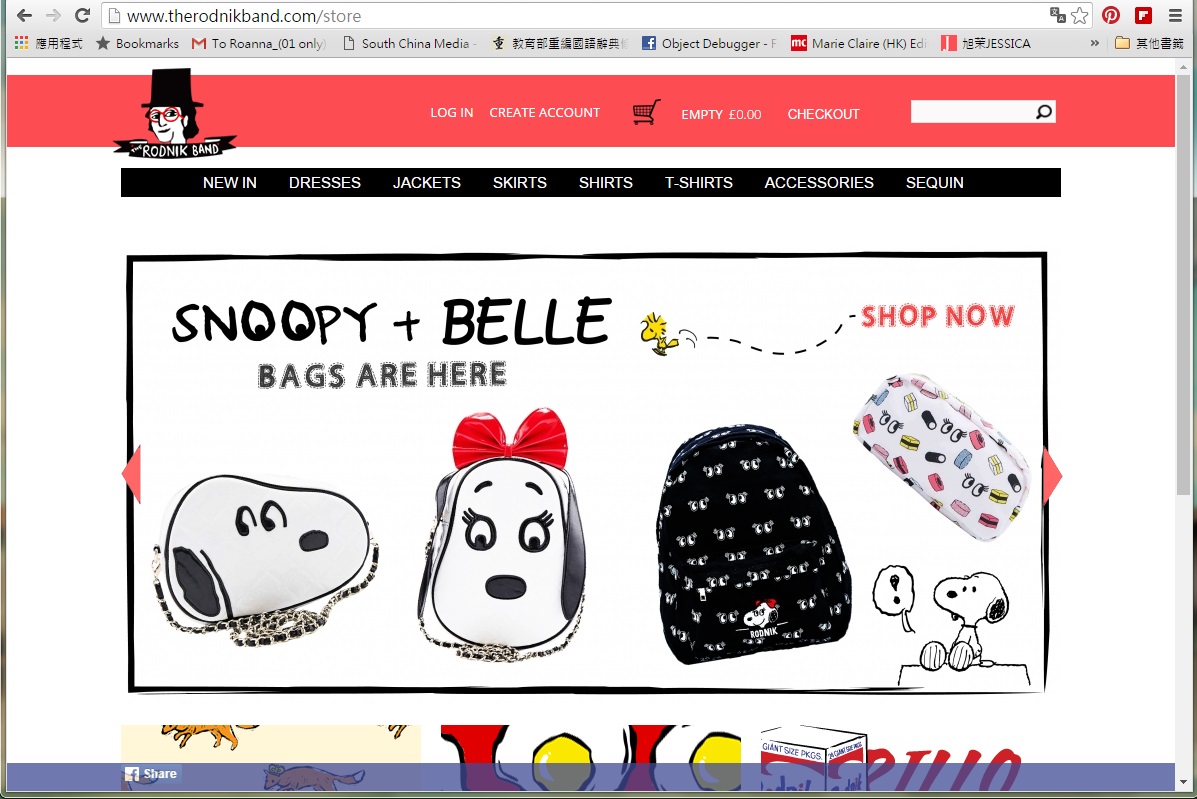 The Rodnik Band的時裝產品種類也頗多,除了最令人一見難忘的珠片系列外,還有外套、恤衫、T-shirt、手袋、clutch、帽、手錶甚至家品都有,而且經常跟不同品牌合作,當中與Snoopy的合作更大受歡迎。