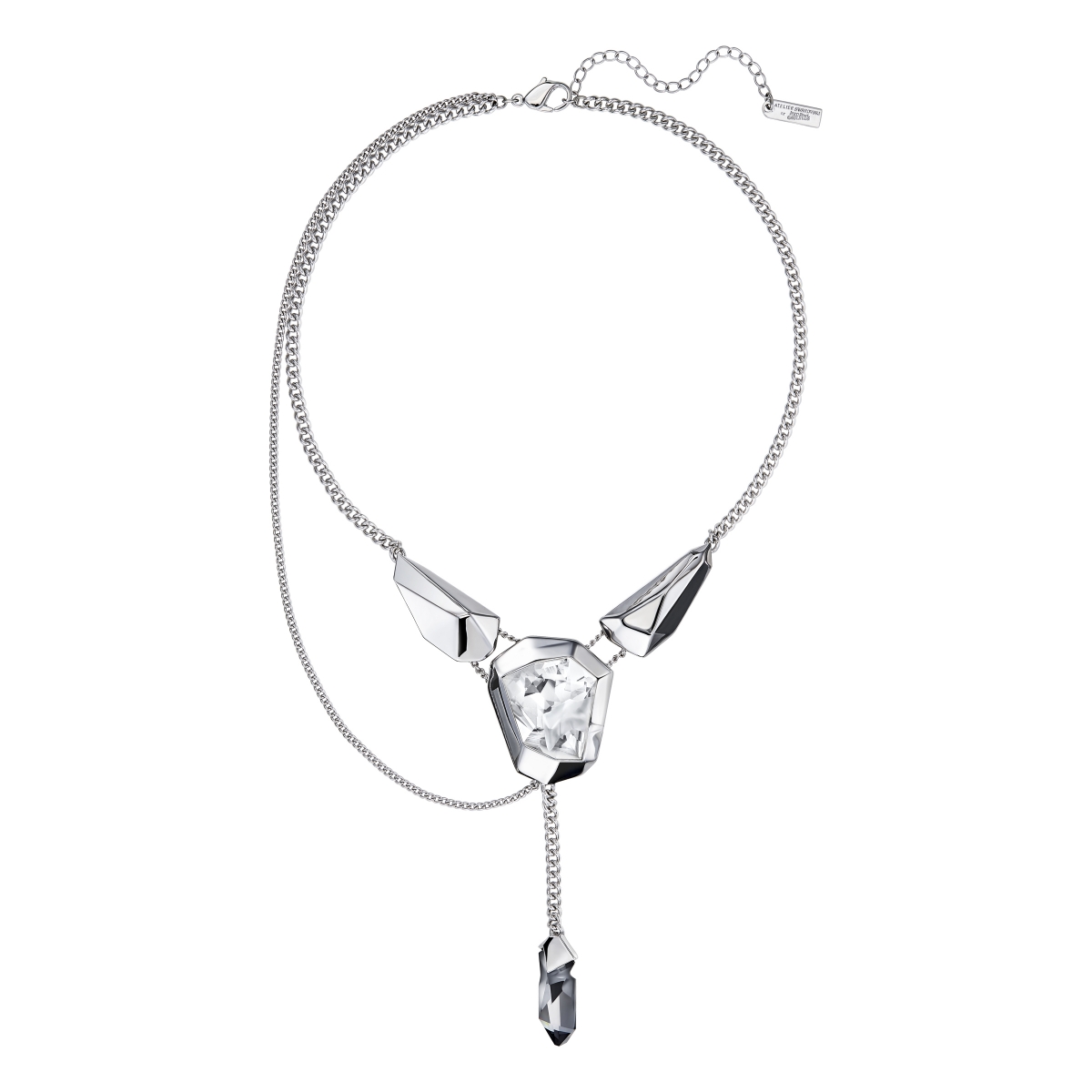 此系列主要採用奢華的鍍黑鉻色金屬與銀色夜影Swarovski水晶,以及鍍白金色金屬與透明Swarovski水晶,展現不對稱的造型魅力。而揉合冷色調與仿隕石割的Kaputt Swarovski水晶,則讓這些全新首飾與靈感源自流星和彗星的Swarovski 2016秋冬Crystal Galaxy系列更顯相得益彰。