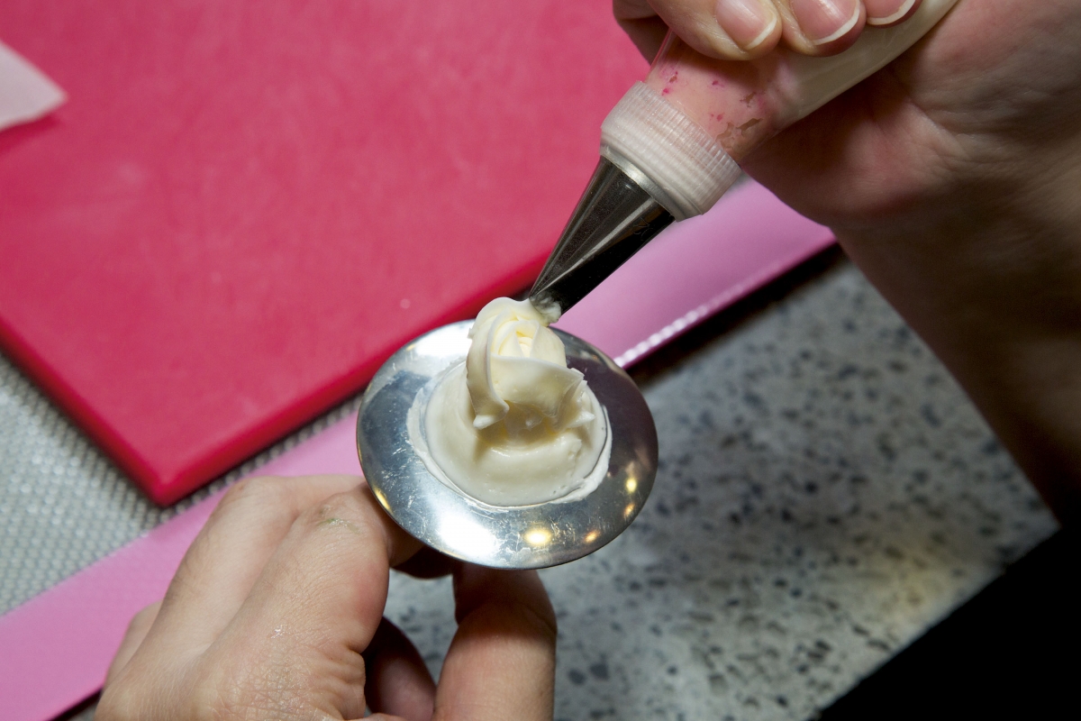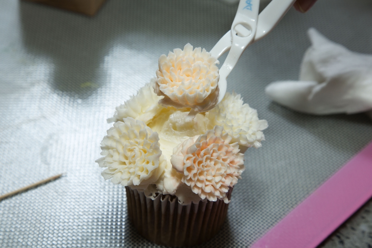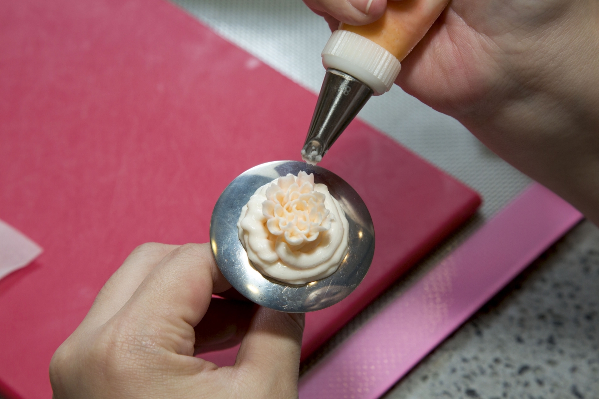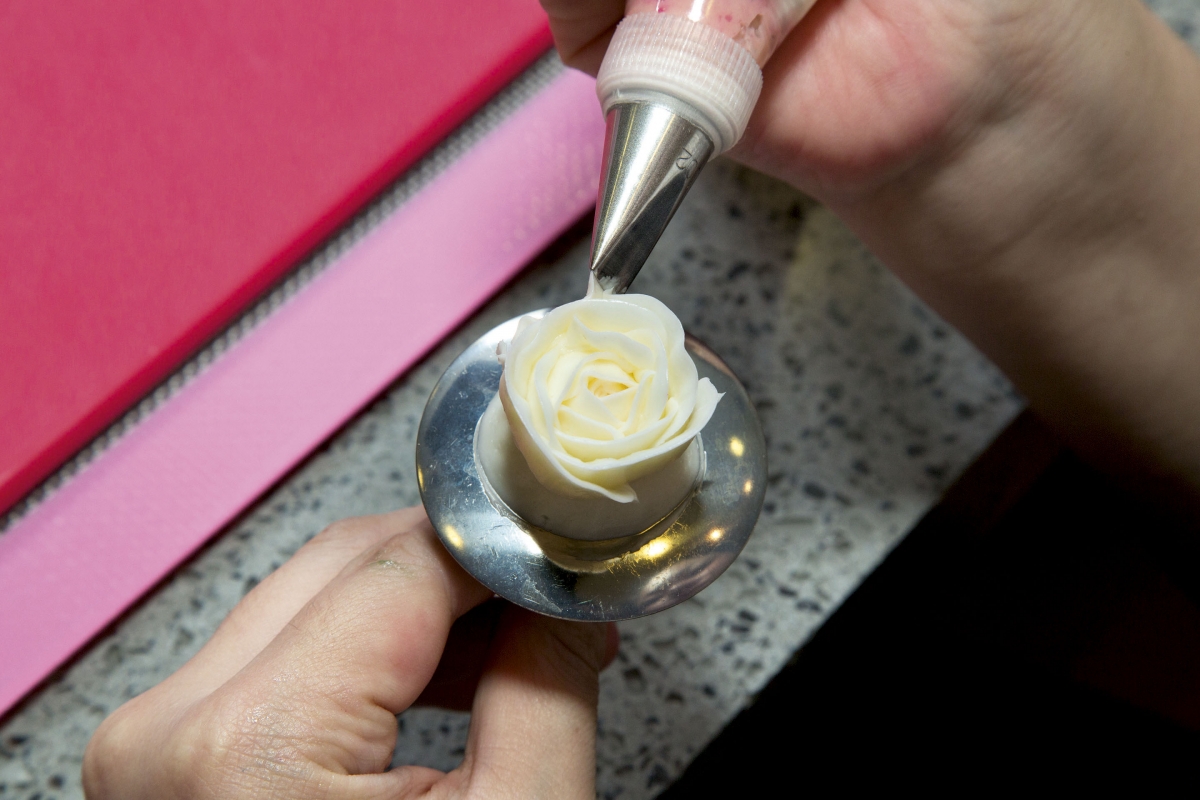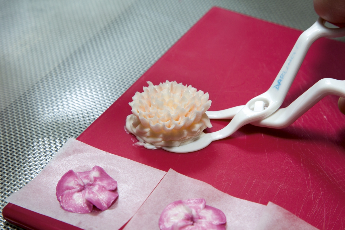 第一眼看到韓式裱花蛋糕還以為是精緻的花藝雕塑,怎知道原來是可以吃的奶油忌廉!果然是「睇得又食得」!只是在香港潮濕天氣之下,忌廉豈不是會瞬間融化?大家可以放心,為了穩定花朵,裱花蛋糕所用的牛油經過混合蛋白和糖水,打成奶油忌廉後的效果會相對挺身,唧出來的花瓣亦較輕薄俐落,像真度十足。Darling強調一定要用韓國的白牛油,方可做出真正的韓式裱花。「與本地和外國的黃牛油不同,韓國的牛油顏色偏白,方便加入色素後調出粉嫩鮮豔的顏色,味道方面則重奶味而不死甜,頗適合香港人的口味。」
