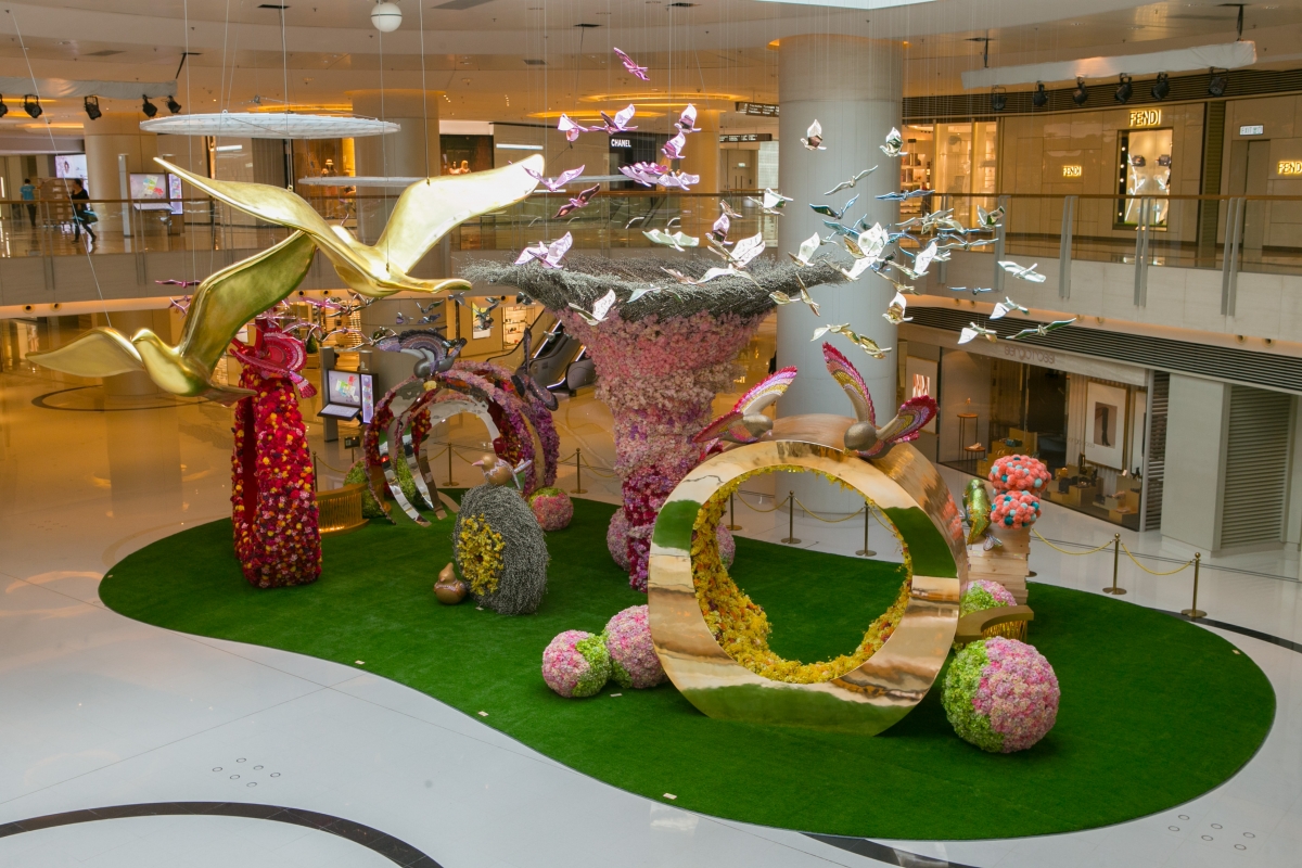 ELEMENTS圓方今年邁向十週年,特別重視本年度的農曆新年裝置,邀請在香港土生土長、橫掃多個國際大獎的Dr. Solomon Leong,夥拍由西班牙遠道而來,並於諾貝爾獎頒獎儀式設計花藝大師Alex Segura,以中西合璧的形式攜手打造了以「花間起舞 振翅高飛」為題的新春藝術裝置,讓顧客置身繁花似錦的園境內,成為園林美景的一部分。