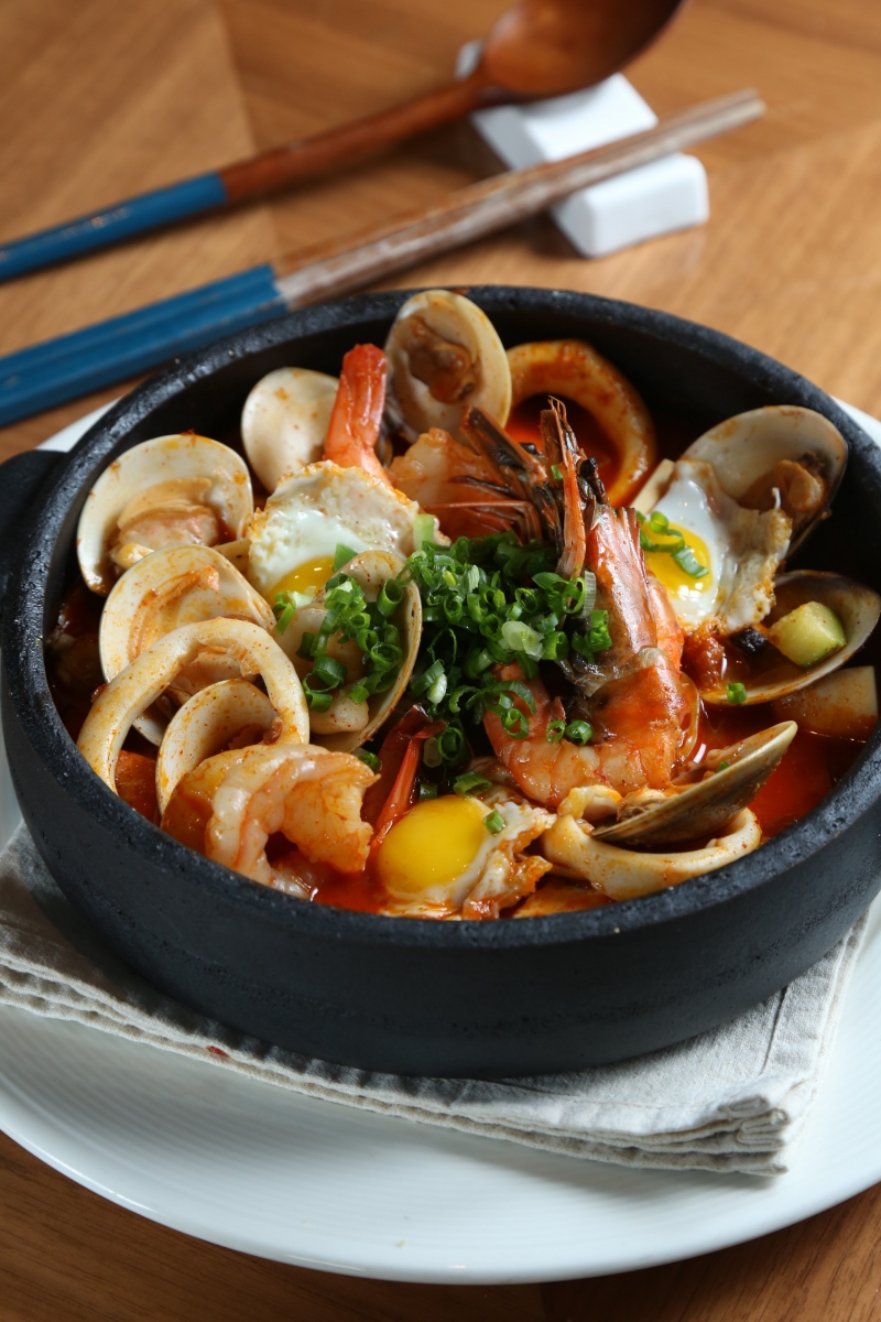 菜式啟發自韓國佳餚——辣豆腐湯(Soondubu Jjigae)。把鯷魚、蜆、魷魚、海蝦和豆腐一起烹煮,海鮮精華會隨著熬煮過程中散發到湯中。