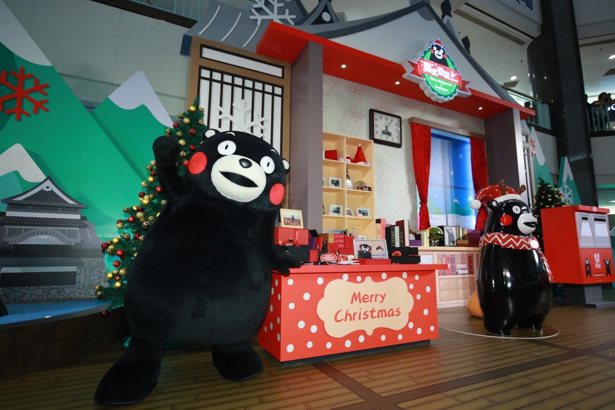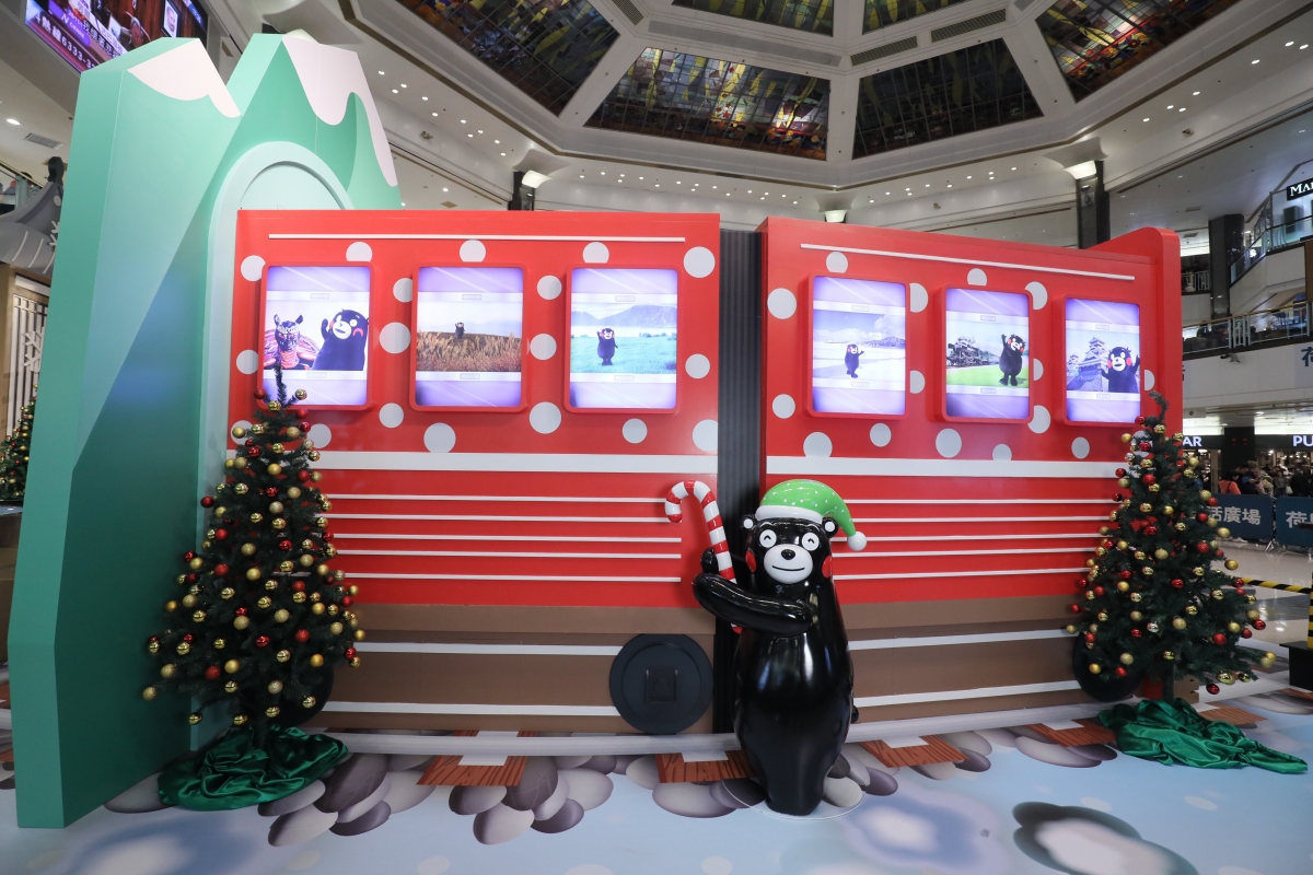 荷里活廣場「熊」式聖誕之旅的設計融入了熊本縣特色景點,打頭陣是首次展出的熊本縣Kumamon當地物產,包括部長的聖誕帽、手套、圍巾,還有Kumamon当地出遊的私照和部長最愛的零食小點,讓你認識他多一點~