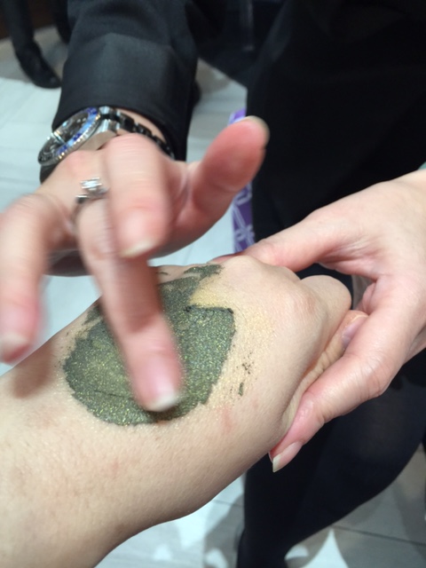 在塗上面後20秒,然後利用化妝棉紙蓋住神奇裝置,輕輕滑過皮膚,然後留下24K黃金修護成分,再待3-5分鐘後,待營養物質全部吸收後,用泡沫去角質霜和溫水潔面。