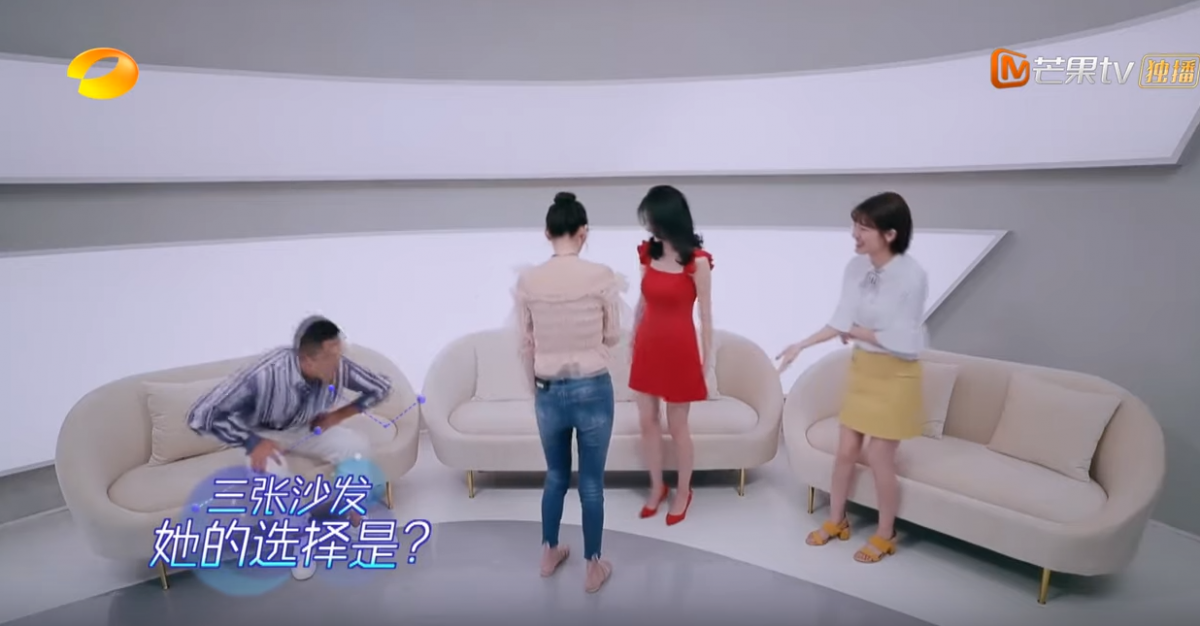 剛踏入房間的時候,就直接坐到房間的中心位,把更原本位置的人擠到一邊去。此舉令在攝影棚內的戀愛觀察員都非常驚訝,大S更直指:「她希望吸引所有異性的目光」,可見這個女生很希望自己成為焦點。