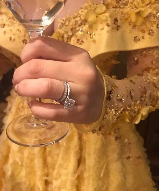 午宴上播出早前在加拿大拍下的影片,苟姑娘老公陸漢洋更在片中唱出《Beauty and the Beast》一曲,實行以行動、聲音霖爆老婆。苟姑娘其後換上一條低胸黃色晚裝裙,十分切合動畫女主角貝兒的衣著。苟姑娘頭上還戴上Tiffany & Co. 全球只得8個的Paper Flower 鑽石后冠,搖身變成幸福公主,跟席上的賓客合照,場面非常熱鬧。