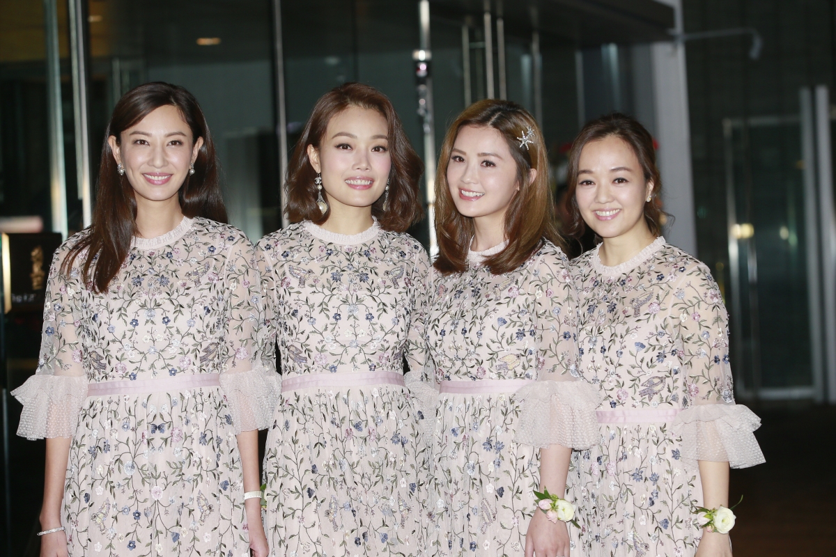 一對新人的大日子又怎能沒有兄弟姊妹團呢?由於老公賴弘國是圈外人,兄弟團都沒有大星,焦點都放在阿嬌的索爆姊妹團上,分別有阿嬌的閨蜜容祖兒、蔡卓妍、鄭希怡和阿嬌的圈外好友楊欣,4人更穿上英國品牌Needle & Thread的粉色花花禮服,與婚禮主題非常配襯。而阿嬌的婚紗選擇了設計師Zuhair Murad 2019春季的婚紗,手工精巧,展現浪漫性感。