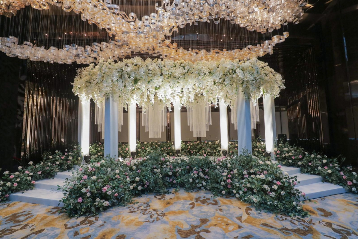 阿嬌擺酒選擇了The Ritz-Carlton Hong Kong,並豪擺38圍,讓上次未能參與美國Pre-wedding Party的朋友都可以出席。婚禮場地裝飾成花海一樣,非常浪漫,是阿嬌夢寐以求的婚禮模樣。原來不止阿嬌來這酒店擺酒,圈中很多名人都愛選址在這,如李玟、胡杏兒羅仲謙和楊怡等,相信是因為Ritz Carlton酒店場地大,可以容納大約56圍,裝潢現代豪華,的確是適合大排筵席的新人。